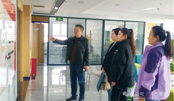 2024年3月29日下午,天山區(qū)總工會(huì)和解放南路街道領(lǐng)導(dǎo)一行六人,在工會(huì)組織建設(shè)負(fù)責(zé)人胡靜文的帶領(lǐng)下到新疆天信集團(tuán),圍繞創(chuàng)建“職工之家”的相關(guān)工作現(xiàn)場(chǎng)進(jìn)行指導(dǎo)、交流。